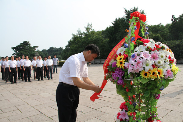 接著,大家懷著無比激動和崇敬的心情,來到雄偉壯麗的烈士紀念碑前,舉行憑吊祭奠儀式。姜建友總裁代表公司向革命烈士敬獻花籃,全體人員在雄壯的《國際歌》聲中向革命烈士鞠躬默哀,并面對黨旗,重溫那段讓大家刻骨銘心的入黨誓言。此時此刻,每一個黨員無不心潮澎湃,思緒萬千。