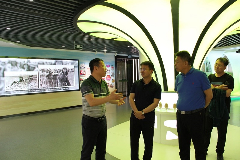 座談會(huì)前,李福罡、常東旭一行到蘇墾大廈19樓江蘇農(nóng)墾展示廳參觀了解農(nóng)墾創(chuàng)業(yè)發(fā)展史和農(nóng)發(fā)主要產(chǎn)品展示。