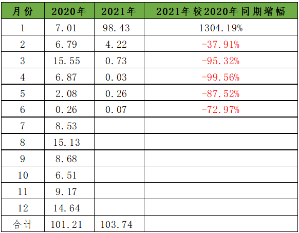 表1 俄羅斯大豆出口量2020年與2021年對(duì)比情況(單位:萬噸)