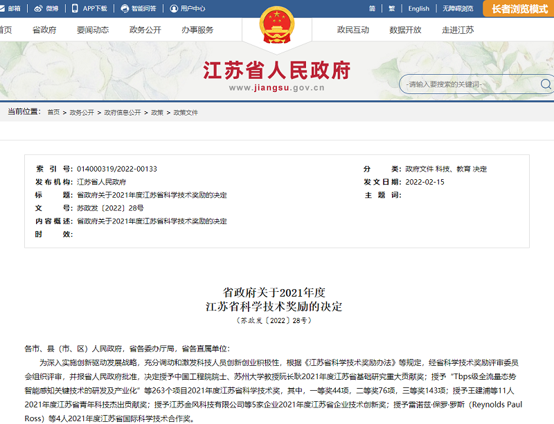 近日,江蘇省人民政府發(fā)布《省政府關(guān)于2021年度江蘇省科學(xué)技術(shù)獎(jiǎng)勵(lì)的決定》(蘇政發(fā)〔2022〕28號(hào)),江蘇省農(nóng)墾農(nóng)業(yè)發(fā)展股份有限公司與江南大學(xué)等單位合作研發(fā)的“稻米多維高效利用關(guān)鍵技術(shù)創(chuàng)新與應(yīng)用”成果榮獲二等獎(jiǎng),這是蘇墾農(nóng)發(fā)公司組建以來首次獲得該獎(jiǎng)勵(lì),彰顯公司在農(nóng)產(chǎn)品精深加工領(lǐng)域內(nèi)突出的研發(fā)能力和創(chuàng)新潛質(zhì)。