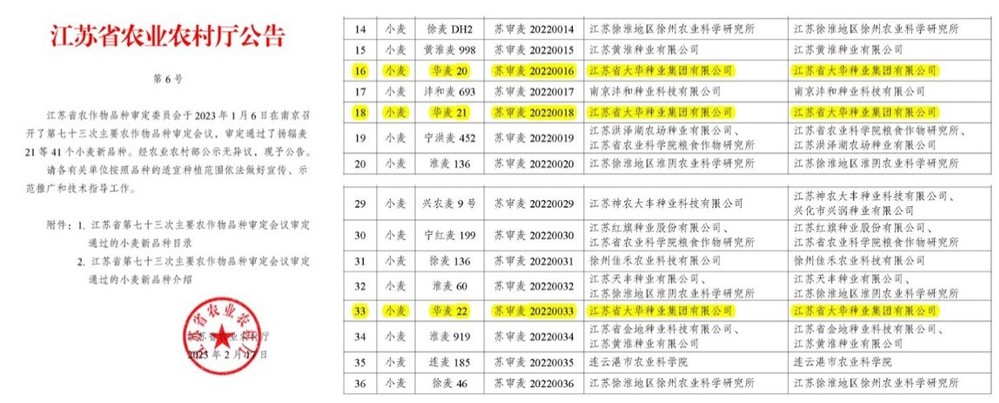 •        近日,江蘇省第七十三次主要農(nóng)作物品種審定會(huì)議審定通過(guò)41個(gè)小麥新品種,由蘇墾農(nóng)科院選育的華麥20、華麥21和華麥22三個(gè)小麥新品種順利通過(guò)審定定名。
