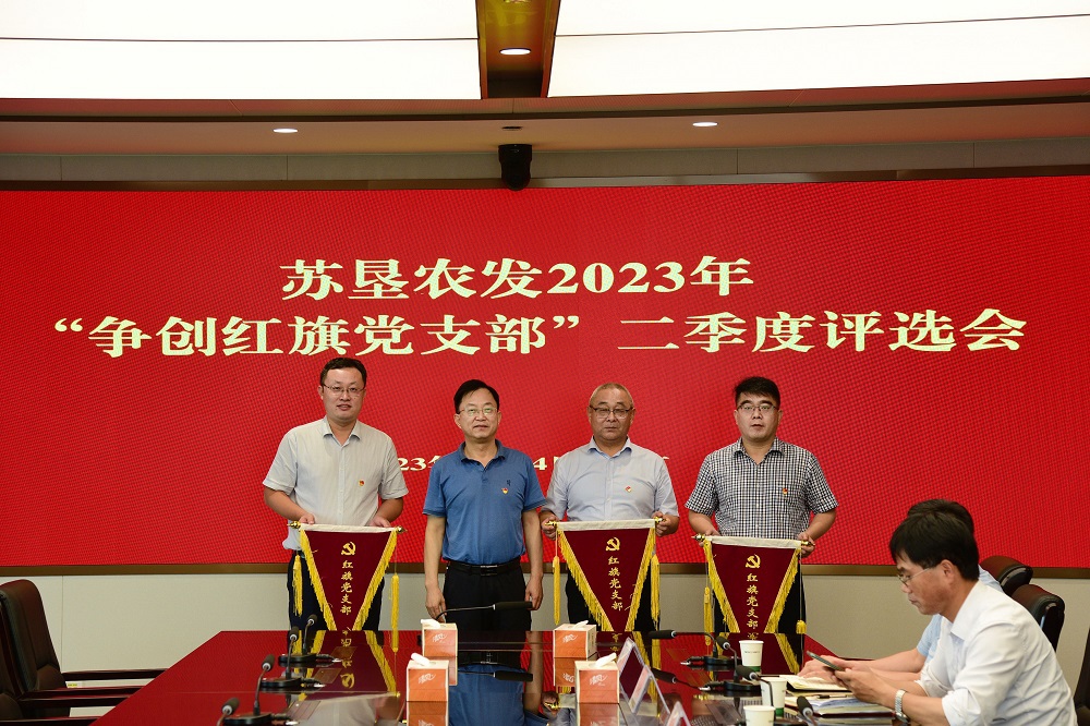 7月24日,蘇墾農(nóng)發(fā)召開2023年“爭創(chuàng)紅旗黨支部”第二季度評選會。公司黨委副書記、工會主席王進強主持會議并講話。