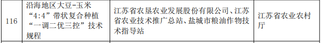 2022年蘇墾農發(fā)承擔了10萬畝玉米大豆帶狀復合種植任務,占江蘇省的1/6,開創(chuàng)性提出了“寬窄行4:4”玉米大豆帶狀復合種植模式,配套研發(fā)6種不同結構的專用農機,實現了玉米大豆“定向化除”,形成了一套措施合理、適用區(qū)域廣、示范性強的技術模式,《沿海地區(qū)大豆-玉米“4:4”帶狀復合種植“一調二優(yōu)三控”技術規(guī)程》作為全省第一個以玉米大豆帶狀復合種植立項的省級地方標準,具有較強的生產推廣價值和實踐應用基礎。