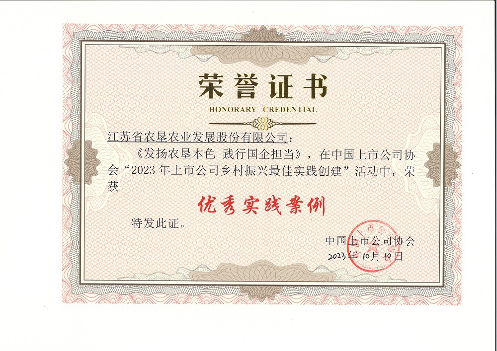 近日,蘇墾農(nóng)發(fā)連獲“2023年公司治理最佳實(shí)踐案例”和“2023年上市公司鄉(xiāng)村振興最佳實(shí)踐創(chuàng)建優(yōu)秀實(shí)踐案例”兩項(xiàng)榮譽(yù),體現(xiàn)了蘇墾農(nóng)發(fā)在公司治理、助力鄉(xiāng)村振興等方面的工作得到了社會(huì)的高度認(rèn)可。