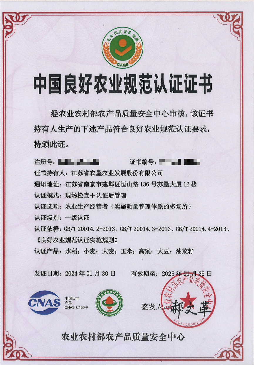 近日,蘇墾農(nóng)發(fā)20個生產(chǎn)基地的水稻、小麥、大麥、玉米、大豆、油菜、高粱等7種作物通過全國良好農(nóng)業(yè)規(guī)范(GAP)一級認(rèn)證,是全國單體規(guī)模最大的一級認(rèn)證單位。