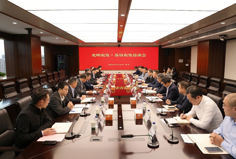 11月18日下午,光明農(nóng)業(yè)發(fā)展 (集團) 有限公司與江蘇省農(nóng)墾農(nóng)業(yè)發(fā)展股份有限公司在南京舉辦懇談會。省農(nóng)墾集團總經(jīng)濟師、蘇墾農(nóng)發(fā)黨委書記、董事長朱亞東主持會議,光明農(nóng)發(fā)集團黨委書記、董事長陳斐然,省農(nóng)墾集團黨委委員、蘇墾農(nóng)發(fā)總裁丁濤,光明農(nóng)發(fā)集團總裁吳偉峰參加座談交流。